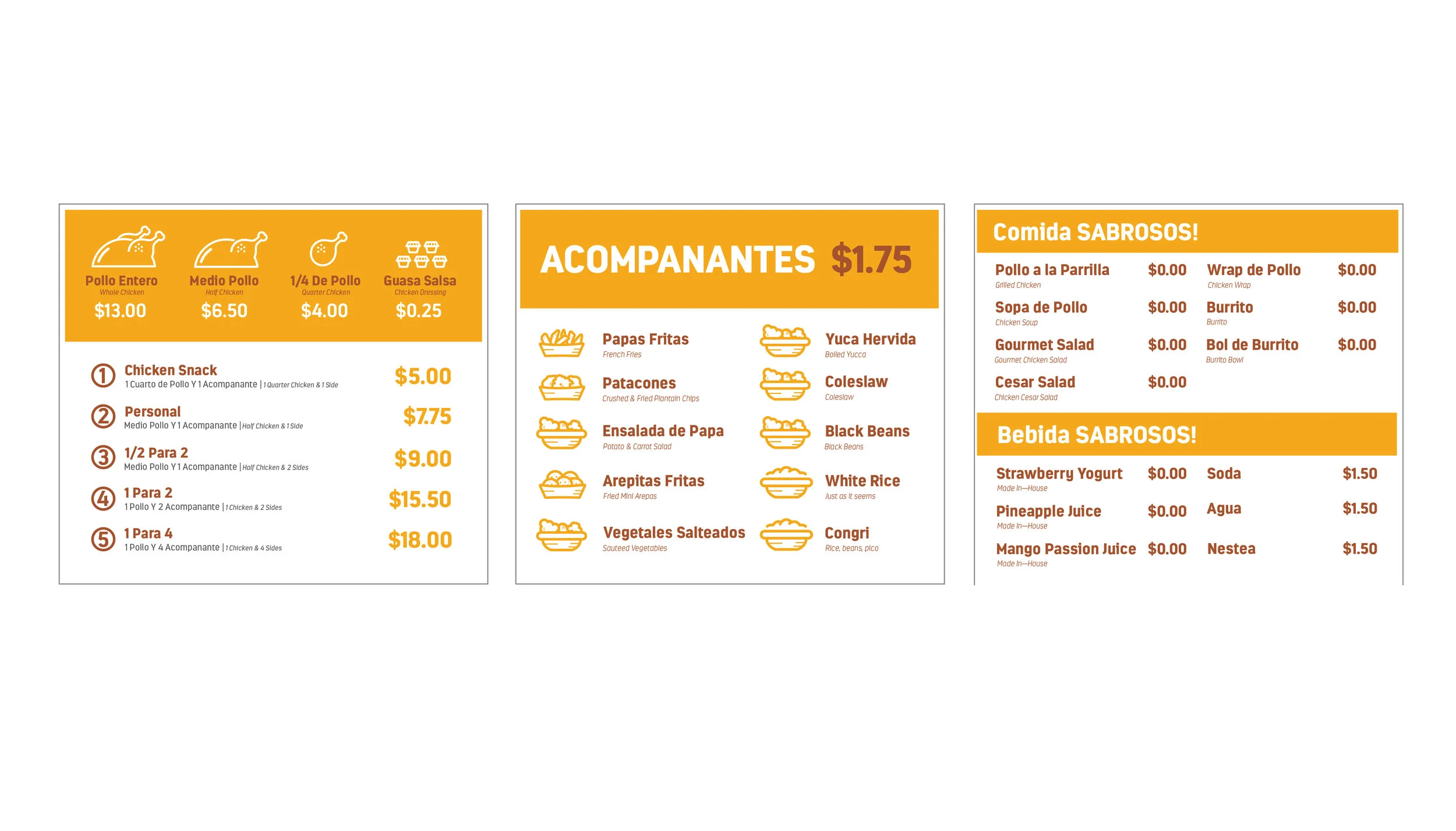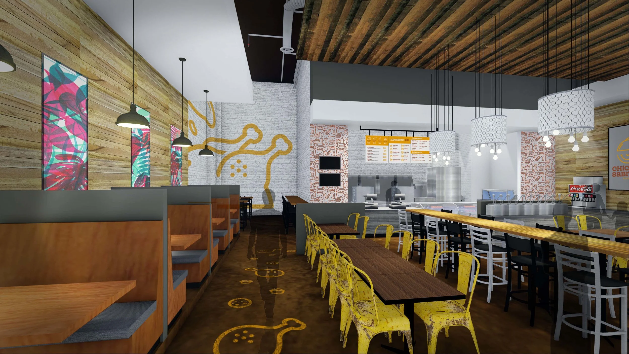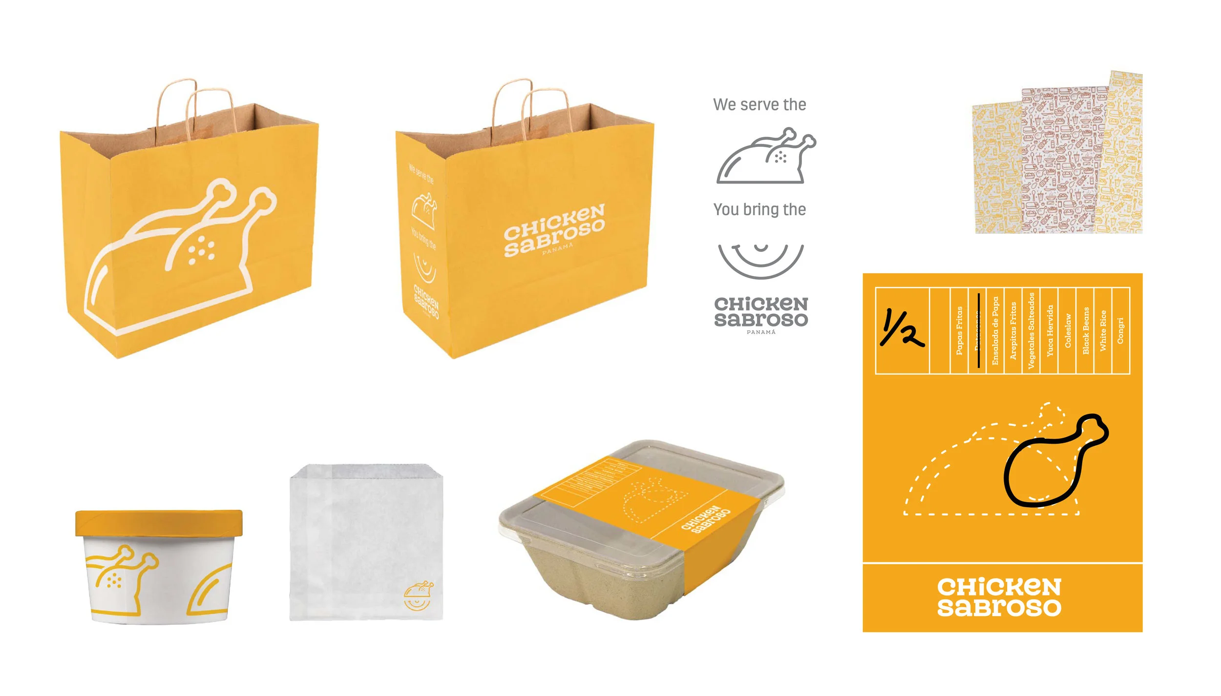 Collaborated with Chicken Sabroso to apply new branding to the restaurant. Working with the new logo, I designed packaging and graphics for the menu system. These designs were also used to craft the interior space.